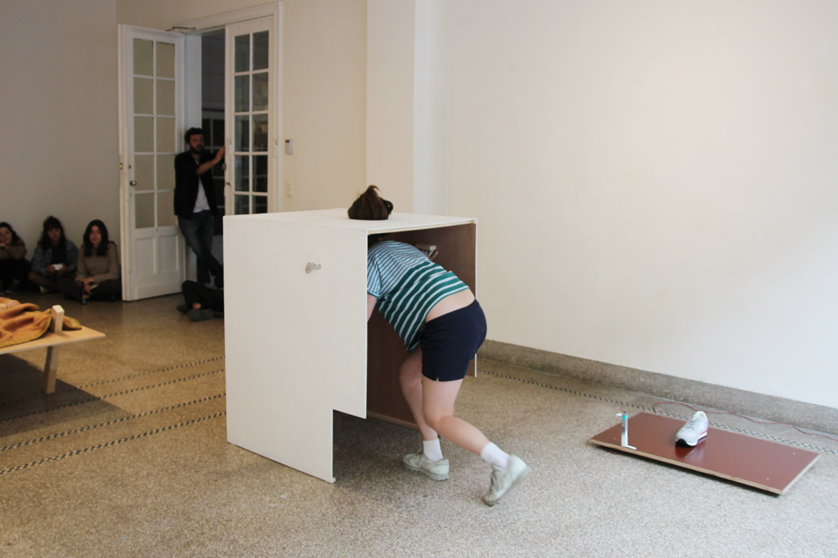 Performance « Posé entre le coin et la marche », Poisson-Eveque, Exposition collective autour de la performance,