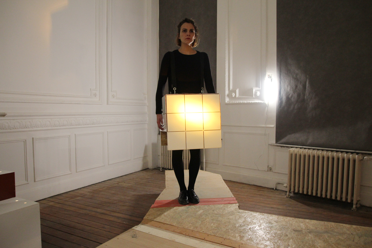 For this exhibtion I showed the video Jeannine tient les maquettes de Jeannot inside an installation. The all installtion questions the passage from model to video, from the object and the moment it’s manipulated. For this exhibition the video is showed without sound, with subtitles.
