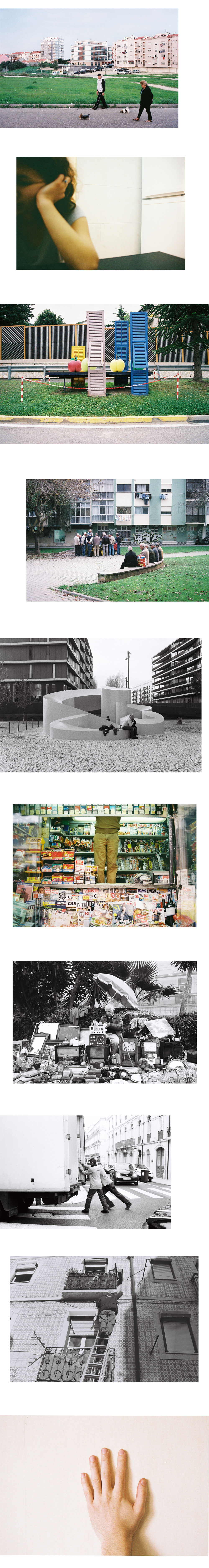 Sharing utopy est un projet né dans la ville de Lisbonne. J’ai demandé à sept personnes, de pays natales et langues différentes, d’imaginer un élément architectural utopique qui s’inscrirait dans un contexte urbain.j’ai construit ces sept utopies sous forme de maquettes que j’ai ensuite fixées sur des structures pour qu’ils puissent les porter sur leur tête. Puis j’ai invité les participants à célébrer la création fictive de cette ville idéale en portant leur utopie sur leur tête, le temps d’une fête. Une ville faite du rassemblement d’utopies partagées.